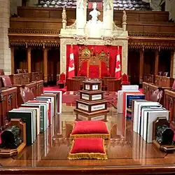 Le Sénat du Canada (en anglais : Senate of Canada) est la chambre haute du Parlement du Canada. Il est composé de 105 sénateurs nommés par le gouverneur général, sur avis du premier ministre, et qui siègent jusqu'à l'âge de 75 ans[1].