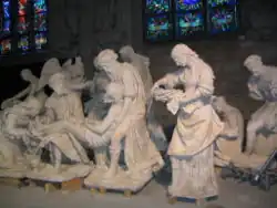- ↑ Charles Cournault, « Ligier Richier : statuaire lorrain du XVIe siècle », sur archive.org (consulté le ), p. 30 - « Ce n'est pas impunément qu'on eût déplacé toutes ces statues, si intimement liées entre elles, qu'on a longtemps cru qu'elles avaient été taillées dans un seul bloc de pierre. »