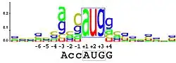 - ↑ (en) M. Kozak, « Possible role of flanking nucleotides in recognition of the AUG initiator codon by eukaryotic ribosomes. », Nucleic Acids Res., vol. 9, , p. 5233-5252 (PMID 7301588)