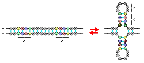 Cette particularité a pour effet de favoriser la formation de structures dites « en épingle à cheveux », ou tige-boucle : les séquences complémentaires et symétriques s'apparient en formant une tige hélicoïdale avec une boucle autour du point de symétrie de la séquence palindromique. On trouve de telles séquences palindromiques dans la plupart des génomes.