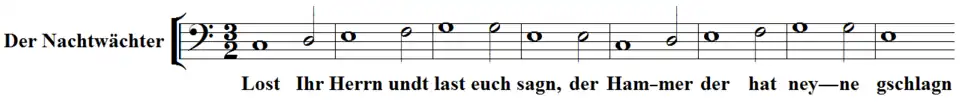 Cette évocation, où ne manque pas une allusion à la vierge Marie dans un royaume catholique en pleine Contre-Réforme, anticipe sur des scènes d'opéra, à l'acte II des Meistersinger von Nürnberg (1868) de Wagner — où l'intervention du veilleur de nuit relève de la comédie — et à l'acte III du Doktor Faust (1924) de Busoni, dans une ambiance de tragédie.