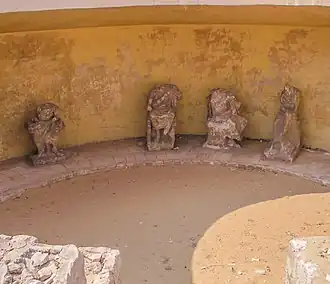 Cet hémicycle jouxtait un édifice dont il devait dépendre. Il fermait l'esplanade et on l’a baptisé le Temple Est. Plus loin au nord de l'allée pavée, une chapelle dédiée à Apis a été mise au jour contenant encore une statue grandeur nature du dieu taureau portant un disque solaire enserré entre ses cornes et orné d'un uræus. Cette statue est aujourd'hui conservée au Musée du Louvre.