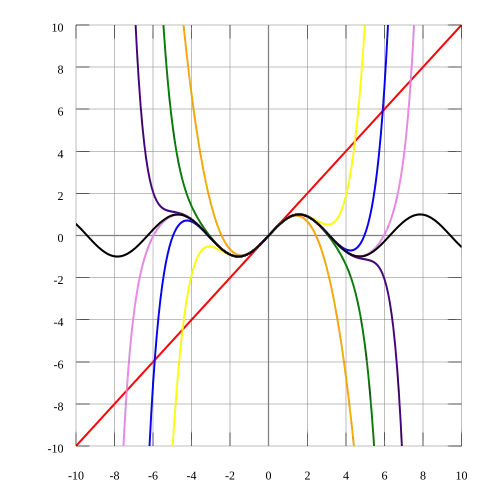 - pour des fonctions de variable réelle, la somme de la série de Taylor de en sur son disque de convergence peut être différente de la fonction ;