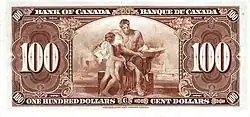 | 100 $ | Sépia | John A. Macdonald | Allégorie du commerce et de l'industrie | ||||