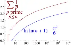 - où est la constante de Meissel-Mertens[a] et la constante d'Euler.