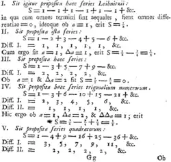 - ↑ Texte original d'Euler sur ces séries ; concernant ces formules, il écrit lui-même (p. 2) : « cela doit paraître bien paradoxe », ajoutant : « mais j'ai déjà remarqué dans une autre occasion, qu'il faut donner au mot somme une signification plus étendue ».