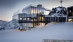 - ↑ « ice Q Restaurant in Sölden – Gourmetrestaurant auf 3.048 m Seehöhe - Restaurant ice Q in Sölden – Gourmet restaurant & James Bond location », sur www.iceq.at (consulté le )