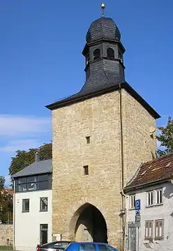 Aux alentours de 1368 fut construite une place appelée mitliln Tor. La porte d'Erfurt (1395) et les remparts existent encore actuellement. La plus vieille porte – qui a aujourd'hui disparu – datait de l'an 1389 et était appelée Wenigensömmersches Tor. Les remparts s'étendaient sur 1 300 m, pour une hauteur de 4 m et une épaisseur de 85 cm ; ils ne furent érigés qu'au cours du XVIe siècle.