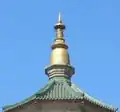 Le sōrin est posé sur le kasa (笠, parapluie) ou yane (屋根, toit), une pyramide à gradins avec quatre ailes aux coins appelée mimikazari (耳飾) ou sumikazari (隅飾)[5].