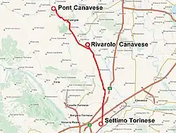- Gare de Turin-Porta-Susa – Settimo Torinese – Rivarolo Canavese, avec transit sur les voies des FS de Turin Porta Susa à Settimo Torinese,