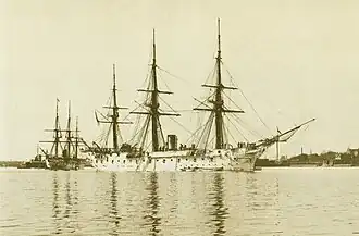 La corvette est reclassée en 1884 en frégate cuirassée, avec propulsion à vapeur. Elle met le cap sur l'île Maurice en , où elle doit mouiller à Port-Louis, le . Le commodore Paschen (de), qui commande l'escadre d'Extrême-Orient, est à son bord. La SMS Stosch doit désormais faire partie d'une nouvelle escadre, afin de défendre les intérêts allemands en Afrique orientale et de répondre à la demande du sultan de Zanzibar, Bargach ben Saïd[1] (1837-1888) de se mettre sous la protection allemande. Le nouveau chef de l'escadre de Zanzibar, le konteradmiral von Knorr, y fait son entrée le à bord du SMS Bismarck, qui remplace donc la frégate en tant que navire amiral. Le traité de commerce et d'amitié avec le sultan de Zanzibar est finalement signé avec succès de part et d'autre. La mission de la frégate est donc terminée et elle peut retourner en Allemagne.