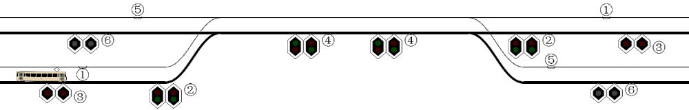 Avec l'électrification du réseau au début des années 1930, une partie du réseau à voie unique est équipée du système de signalisation lumineuse d'occupation pour voie unique développé par la SNCV. La signalisation est activée manuellement par clef, il permet donc également de faire circuler les locomotives et autorails sur les sections électrifiées. Par la suite le système est automatisé au moyen de contacteurs sur la ligne aérienne à l'entrée et à la sortie des voies uniques actionnés par le pantographe sur les motrices électriques. Pour permettre la circulation des autorails, ceux-ci sont équipés d'un pantographe pour actionner les contacteurs (celui-ci ne servant qu'à cela). La section, Courtrai Doorniksewijk - Bellegem Aubettestraat également parcourue par les autorails de la ligne 406 Tournai - Courtrai a probablement gardé l'ancien système manuel par clef, les autorails du réseau de Tournai n'ayant jamais été équipés d'un pantographe.