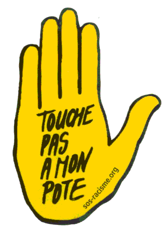 Les mots d'ordre de l'association sont ceux de la fraternité et du multiculturalisme symbolisés par le slogan « Touche pas à mon pote » trouvé par le journaliste Didier François[28], inscrit au sein d'une main jaune créée par le communicant Christian Michel[29]. Dans ses premières années, l'association mène plusieurs actions très médiatiques, dont la plus marquante est le « Concert des Potes ». Le premier a eu lieu le à 19 h (et s'est prolongé jusqu'à 5 h du matin). Il s'est appelé « Touche pas à ma concorde » (place de la Concorde)[30]. Le deuxième a eu lieu le 14 juin 1986 et a été surnommé « Mon pote, c'est le pied » (Place de la Bastille). Quant au troisième concert (20 juin 1987 : voir Vincennes) ainsi que ceux ayant eu lieu jusqu'à aujourd'hui, ils s'appellent tout simplement le « Concert des Potes ».