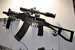 Le SR-3 Vikhr (СР-3 Вихрь, russe pour "tourbillon") est un fusil d'assaut compact russe 9 × 39 mm. Il a été développé par AD Borisov, VN Levchenko et A. Tyshlykov au TsNIITochMash (Institut Central de Recherche sur la Construction de Machines de Précision) au début des années 1990 et a été fabriqué en 1994. Fortement basé sur l'AS Val, mais dépourvu de silencieux intégré, il possède une crosse pliante nouvellement conçue et une poignée de chargement pour faciliter le transport dissimulé. L'abréviation "SR" signifie "spetsialnaya razrabotka" - développement spécial.