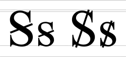 À droite, S barré diagonalement tel qu’utilisé en luiseño ou cupeño et juaneño.