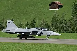 Le JAS 39 Gripen (« griffon ») est un avion multirôle de quatrième génération développé par la Suède dans les années 1980. Mis en service en 1996 dans la Force aérienne suédoise, il a été exporté en Hongrie, en République tchèque, en Afrique du Sud, en Thaïlande et au Brésil (où il prend le nom de F-39 Gripen[2]) avec [Quand ?] 306 exemplaires commandés au total dont 204 pour la Suède. L'utilisation importante de composants étrangers en font un appareil dont l'exportation est soumise à l'accord du gouvernement américain et du gouvernement britannique[3].