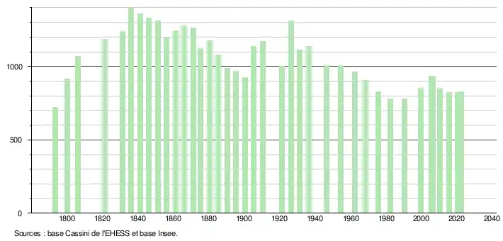 - ↑ Fiches Insee - Populations de référence de la commune pour les années 2006, 2007, 2008, 2009, 2010, 2011, 2012, 2013, 2014, 2015, 2016, 2017, 2018, 2019, 2020, 2021 et 2022.