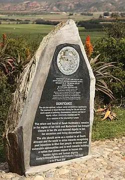 Le , la dépouille de Sawtchie est solennellement accueillie au Cap. Le (date symbolique correspondant à la Journée nationale des femmes en Afrique du Sud), après une cérémonie œcuménique, la dépouille, après avoir été purifiée, est placée sur un lit d'herbes sèches auquel on met le feu selon les rites de son peuple. Elle est inhumée sur la colline de Vergaderingskop près de Hankey, son village natal, en présence du président Thabo Mbeki, de plusieurs ministres et des chefs de la communauté Khoïkhoï[25].