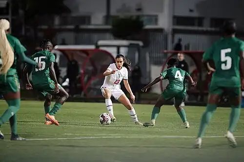 - ↑ « تشكيلة المنتخب الوطني لكرة القدم النسوية أمام ناميبيا », sur frmf.ma, (consulté le )