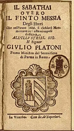 Biographie italienne de Sabbataï Tsevi sous forme d'une lettre anonyme de Constantinople, en date du . Publication à Rome, en 1669