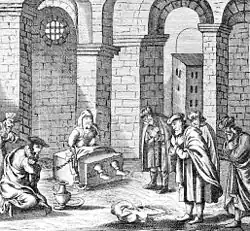 Sabbataï Tsevi prisonnier à Abydos. Gravure v. 1701. Jewish Encyclopedia.
