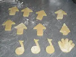 Généralement rond, le sablé a souvent les bords dentelés. La pâte est soit abaissée et découpée à l'emporte-pièce, soit roulée en boudin et détaillée en tranches.
