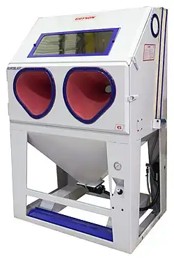 Le traitement de petites et moyennes pièces peut se faire en cabine à manche, cette solution permet de travailler confortablement en confinant dans la machine l'abrasif et les poussières générées. La cabine peut être équipée d'une installation de recyclage et de nettoyage de l'abrasif en continu. Les sableuses peuvent être munies de bandes transporteuses ou équipées pour le traitement des pièces en automatique.