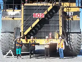 Le processus original d'extraction utilisé pour les sables bitumineux a été mis au point par Karl Clark en collaboration avec l'Alberta Research Council dans les années 1920[24]. Depuis les années 1960, le bitume est extrait par d'énormes pelles mécaniques dans des mines à ciel ouvert. Il est ensuite acheminé au centre de traitement où il est séparé du sable grâce à des variantes du procédé de Clark basé sur l'eau qui sépare le bitume aéré des autres composants du sable bitumineux dans des bacs de sédimentation. Les véhicules utilisés pour transporter le bitume consomment 230 litres de diesel à l'heure et fonctionnent 6 000 heures par an, émettant chacun 3 700 tonnes de GES par an[25]. Une usine de transformation du bitume brut capable de traiter 100 000 barils par jour émet environ 1,4 mégatonne de carbone par an. En 2014, ces usines produisaient 5 % des émissions de GES du Canada[25].