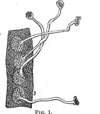 Spécimen repêché accidentellement d'Eurypharynx Pelecanoides en 2004, au large des eaux du Grand Bank, Terre-Neuve, Canada. Notez qu'ici le jabot est déplié.- Gravure de 1887 d'un Saccopharynx ampullaceus.