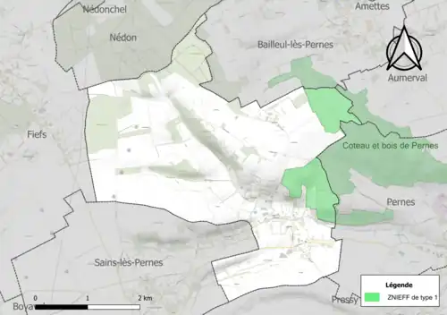 Le territoire communal comprend une ZNIEFF de type 1[Note 2] : le coteau et le bois de Pernes, d’une superficie de 171 ha et d'une altitude variant de 103 à 177 mètres. Ce site est un ancien lieu d’activité agropastorale du Béthunois lors du siècle précédent[11].