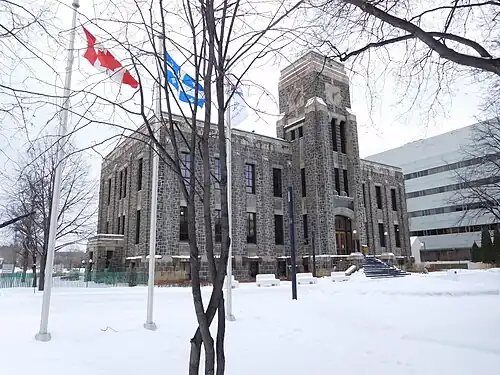 - ↑ « L’hôtel de ville d’Arvida : Un édifice moderne, sobre et pratique », Le lingot, , p. 4 (lire en ligne)