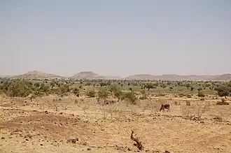 Il faut également noter que la végétation sahélienne sur plateaux latéritiques a souvent un aspect strié, ou en rosaces, sur les photographies aériennes. Ce phénomène, connu sous le nom de « brousse tigrée »[24], se produit également dans les autres régions semi-arides du monde.
