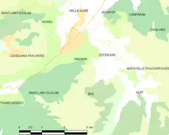 Sailhan est limitrophe de cinq autres communes, dont Vielle-Aure au nord-ouest sur environ deux-cents mètres.
