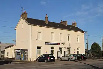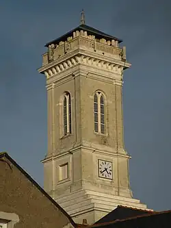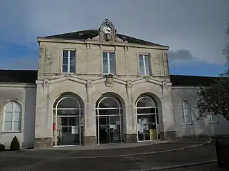 ![]() ![]() ![]() ![]() De haut en bas : église, mairie, gare, salle de concert « Espace Montluc » |