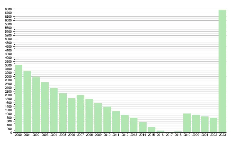 | Année | 2013 | 2014 | 2015 | 2016 | 2017 | 2018 | 2019 | 2020 | 2021 | 2022 | 2023 |
