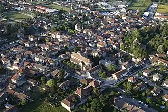 La commune présente un fort contraste entre sa partie ancienne et des faubourgs de construction plus récentes. Le bourg ancien présente un habitat assez resserré et se situe aux limites méridionales de la plaine de Bièvre au pied des derniers contreforts de la partie orientale du plateau de Chambaran, mais la cité s'est ensuite développée dans la plaine. Les principales zones commerciales et la zone aéroportuaire se situent, quant à elle, dans la partie septentrionale de la commune, reliées par une route à voies aux autres agglomérations de la région.