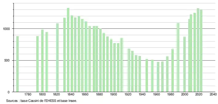 - ↑ Fiches Insee - Populations de référence de la commune pour les années 2006, 2007, 2008, 2009, 2010, 2011, 2012, 2013, 2014, 2015, 2016, 2017, 2018, 2019, 2020, 2021 et 2022.