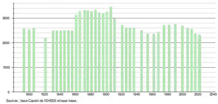 - ↑ Fiches Insee - Populations de référence de la commune pour les années 2006, 2007, 2008, 2009, 2010, 2011, 2012, 2013, 2014, 2015, 2016, 2017, 2018, 2019, 2020, 2021 et 2022.