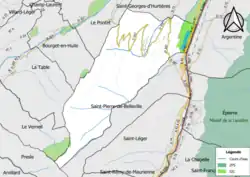 - le ruisseau Nant Pelain[13], affluent en rive gauche du Nant Bruant, d'une longueur de 1,69 km, qui prend sa source dans le territoire de la commune, coule d'ouest en est pour se diriger vers Saint-Pierre-de-Belleville où il se jette dans le Nant Bruant ;