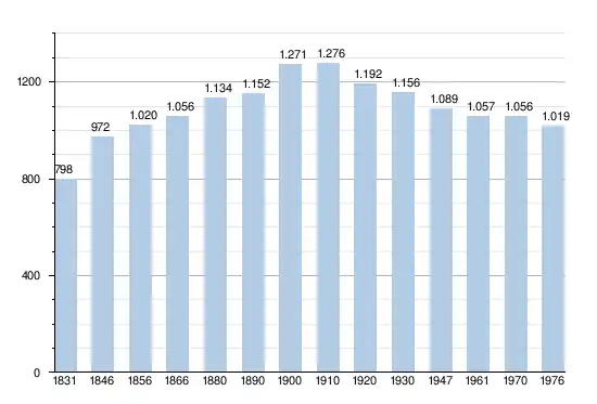 - Sources : INS, Rem. : 1831 jusqu'en 1970 = recensements, 1976 = nombre d'habitants au 31 décembre.