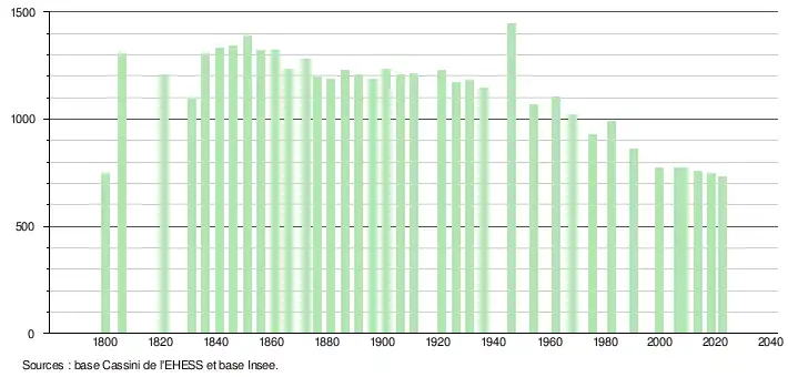 - ↑ Fiches Insee - Populations de référence de la commune pour les années 2006, 2007, 2008, 2009, 2010, 2011, 2012, 2013, 2014, 2015, 2016, 2017, 2018, 2019, 2020, 2021 et 2022.