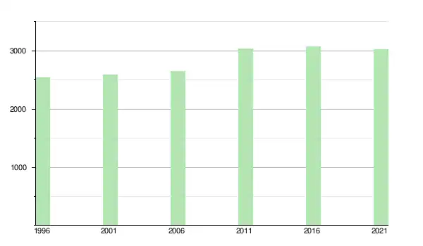 Le recensement de 2011 y dénombre 3 035 habitants soit 14,8 % de plus qu'en 2006[3].