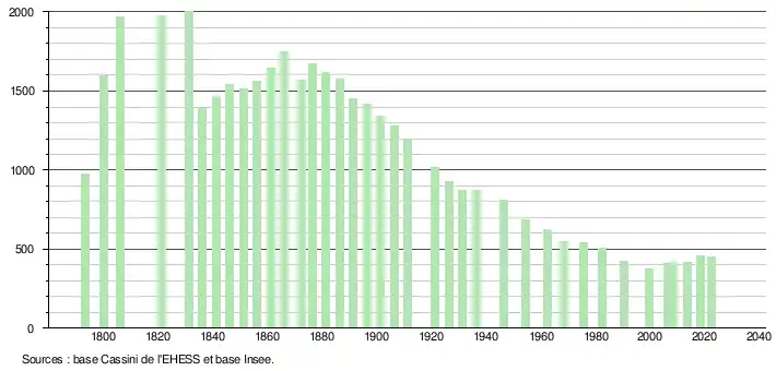 - ↑ Fiches Insee - Populations de référence de la commune pour les années 2006, 2007, 2008, 2009, 2010, 2011, 2012, 2013, 2014, 2015, 2016, 2017, 2018, 2019, 2020, 2021 et 2022.