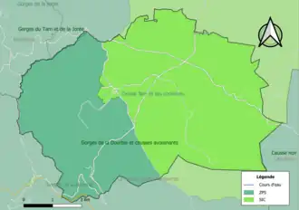 et une ZNIEFF de type 2[Note 2],[22], le « causse Noir et ses corniches » (20 863 ha), qui s'étend sur 14 communes dont 10 dans l'Aveyron, 3 dans le Gard et 1 dans la Lozère[26].