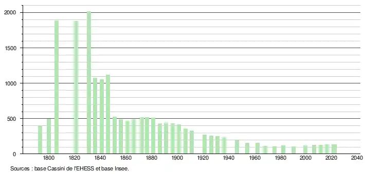 - ↑ Fiches Insee - Populations de référence de la commune pour les années 2006, 2007, 2008, 2009, 2010, 2011, 2012, 2013, 2014, 2015, 2016, 2017, 2018, 2019, 2020, 2021 et 2022.