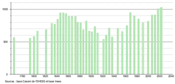 - ↑ Fiches Insee - Populations de référence de la commune pour les années 2006, 2007, 2008, 2009, 2010, 2011, 2012, 2013, 2014, 2015, 2016, 2017, 2018, 2019, 2020, 2021 et 2022.