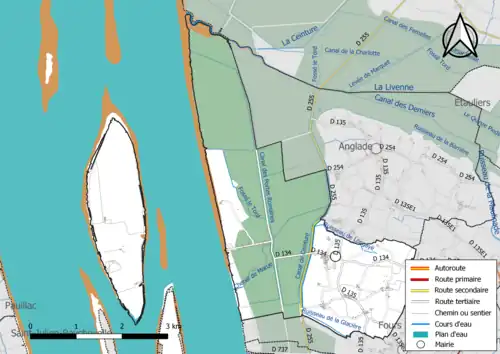 L'île de Patiras et le phare de Trompeloup appartiennent à la commune, et l'île Bouchaud, plus en amont, appartient à la commune de Saint-Genès-de-Blaye[1].