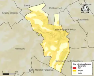 Le retrait-gonflement des sols argileux est susceptible d'engendrer des dommages importants aux bâtiments en cas d’alternance de périodes de sécheresse et de pluie. 68,4 % de la superficie communale est en aléa moyen ou fort (52,8 % au niveau départemental et 48,5 % au niveau national). Sur les 165 bâtiments dénombrés sur la commune en 2019, 137 sont en aléa moyen ou fort, soit 83 %, à comparer aux 70 % au niveau départemental et 54 % au niveau national. Une cartographie de l'exposition du territoire national au retrait gonflement des sols argileux est disponible sur le site du BRGM[15],[Carte 2].