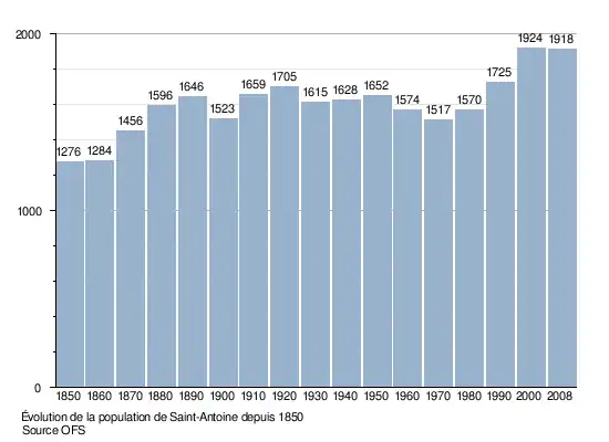 Selon l'Office fédéral de la statistique, Saint-Antoine compte 2 079 habitants en 2023[3]. Sa densité de population atteint 124 hab./km2.