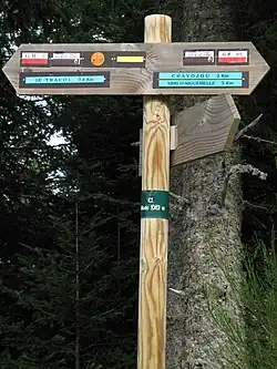 - La croix de Sainte-Blandine, construite en 1898, détruite en 1910 par la chute d'un arbre puis rebâtie, se distingue par son imposant socle en pierre (environ 20 m3)[51].
